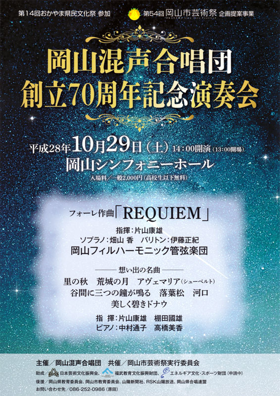 | 10月8日(土) | 東日本大震災復興応援合唱コンサート(岡山市民文化ホール) |